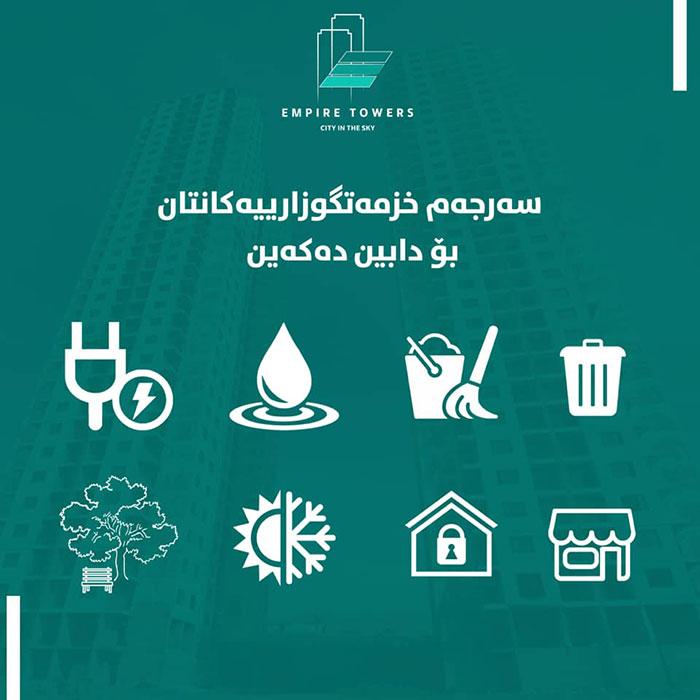يتم تنفيذ مشروع إمباير تاور من لدن كروب شركات والی اینتربرایز، وهو إحدى أعلى عمارات كوردستان والعراق كلها، حيث تتكون من عمارتين ذواتي 35 طوابق بقرب جسر كوباني بمدينة السليمانية.